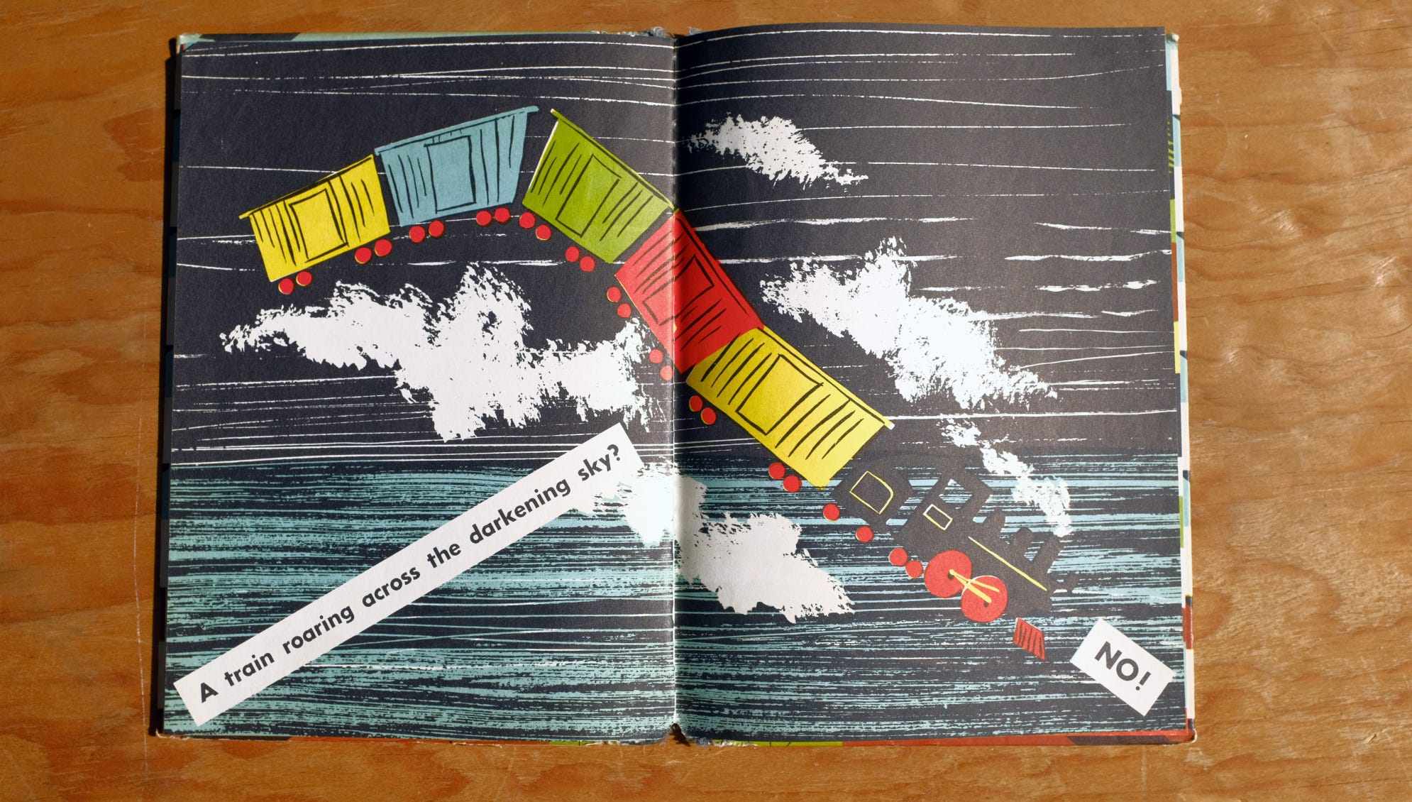 The best parts of the Noisy Books are sections where Brown proposes —and immediately discards — poetic theories to explain some mysterious sound. In these spreads, the words and the pictures achieve a shocking and beautiful liberation unrivaled in picture books.