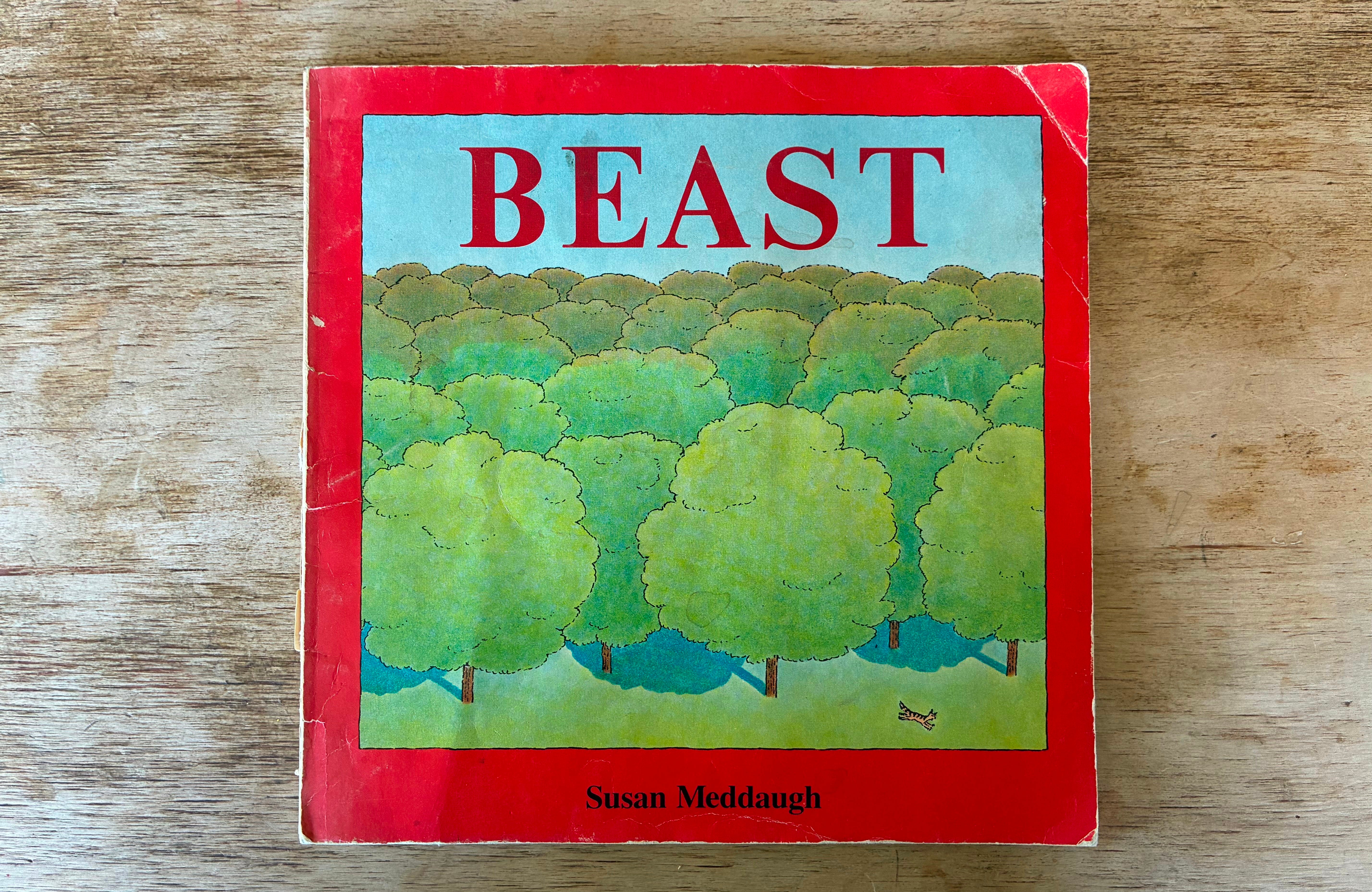 I found this one in a used bookstore last year and I remember staring at it, not quite believing what I wasn’t seeing. I looked all over it, sure that Susan had drawn the BEAST somewhere in there, and made it less good, if only because someone, somewhere, would have demanded that of her. But the more I looked, the more Susan had pulled it off. There is no BEAST on this cover. The cat running for its life all tiny in the corner is the perfect amount of interest and action so it’s not just trees. Four stars.