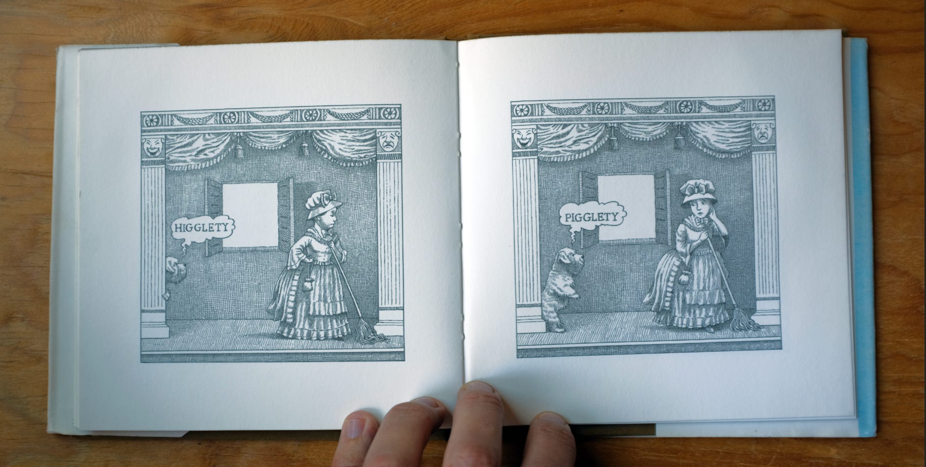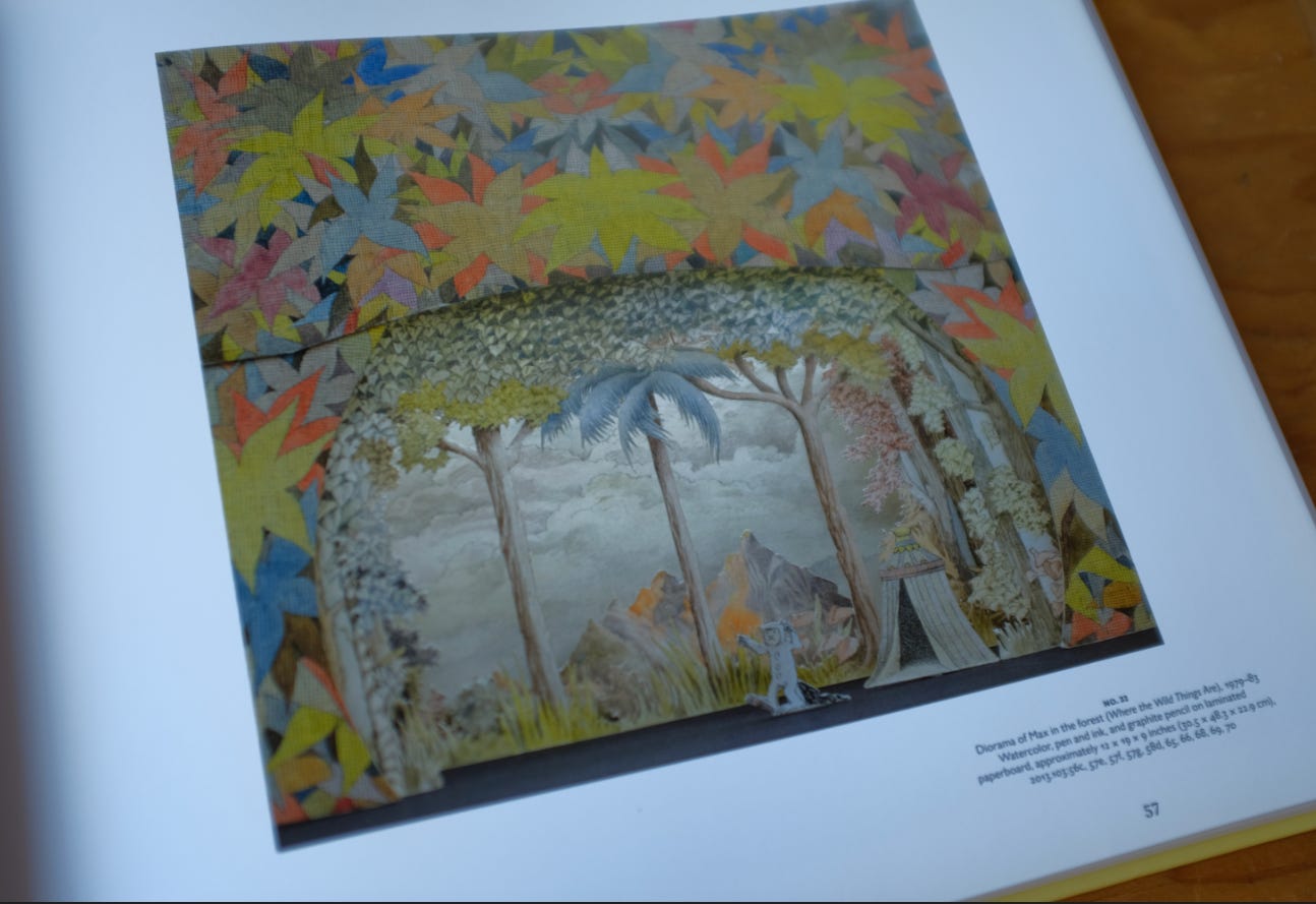 “And by the way,” says Downs, “you can take Mr. Sendak away from his books, but you can’t take books away from his sets.” If I were to further complicate this tangled construction (and why not!), I would add that you can’t take sets away from Sendak’s books. The theater is all over his picture book designs —it’s a big part of why they work so well to read aloud.