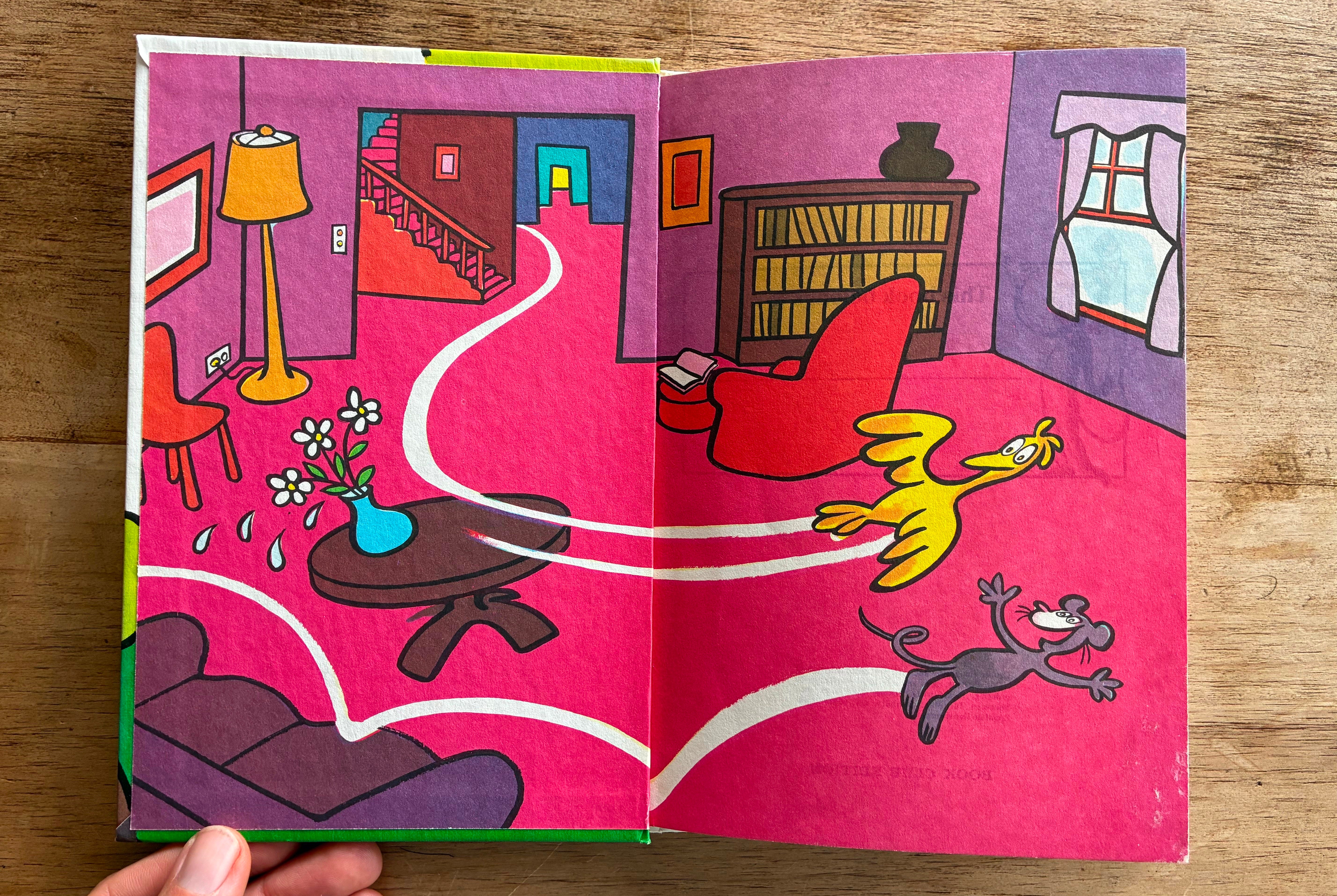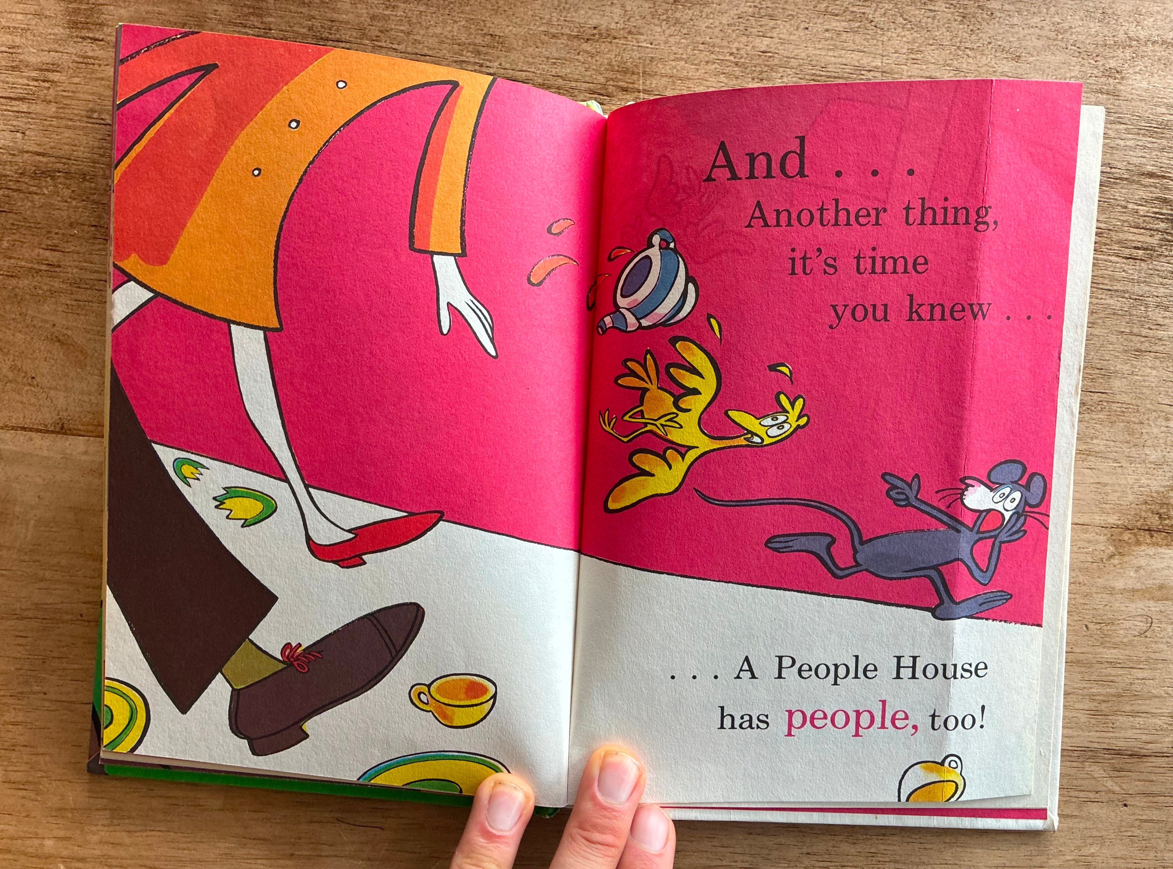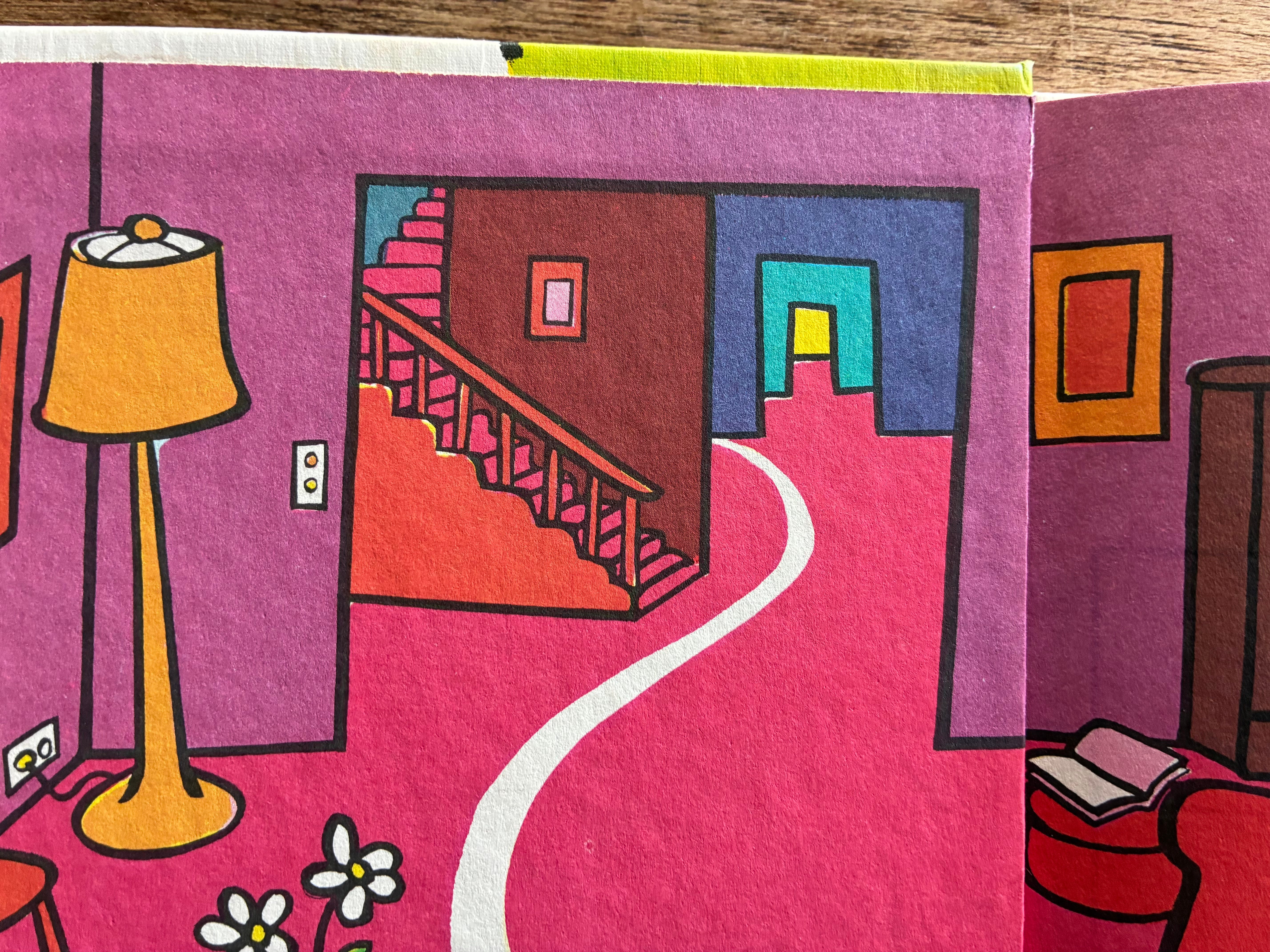 This book stressed me out SO MUCH. I couldn’t believe they were in a people’s house, just bouncing around. It’s not their house!! Get out of there!! But once this is set up, the text is mainly just listing stuff.