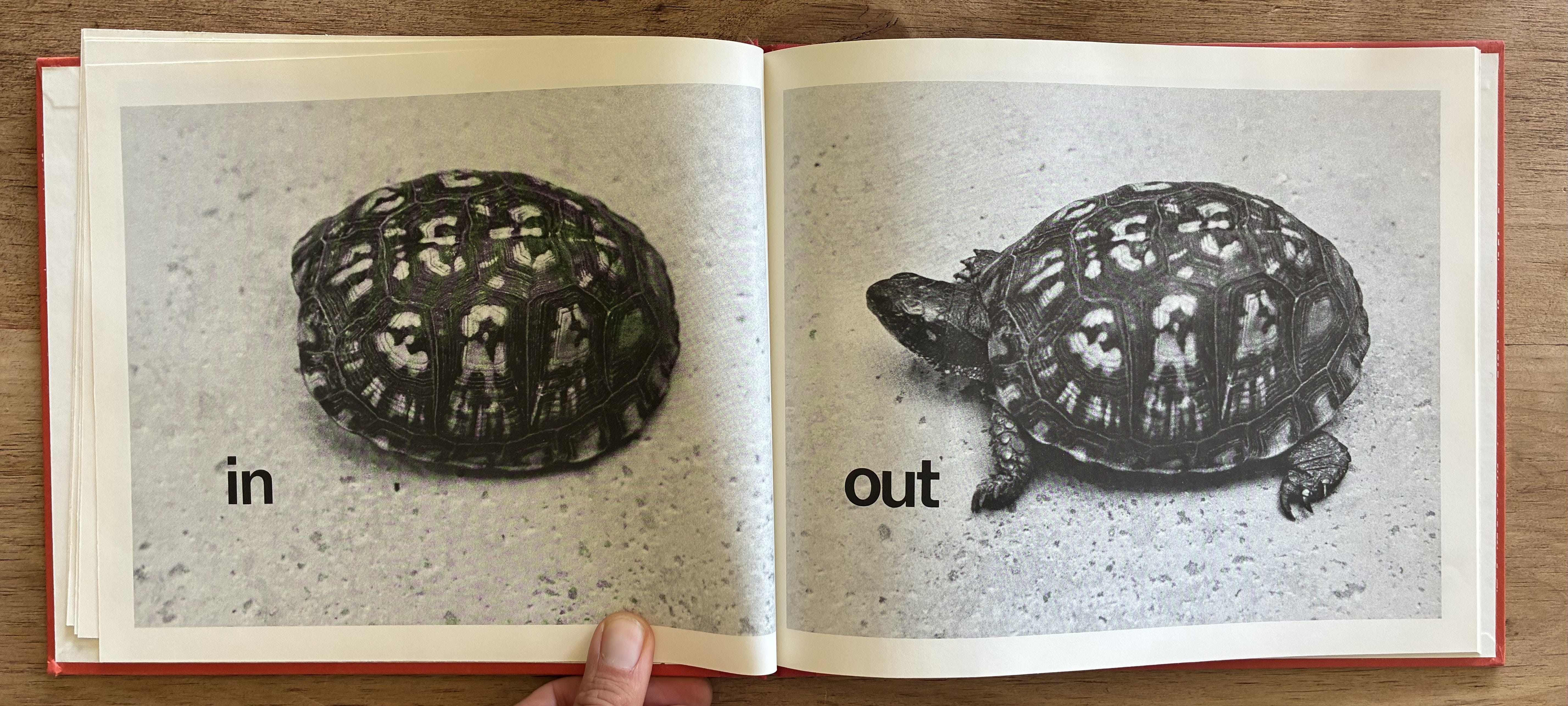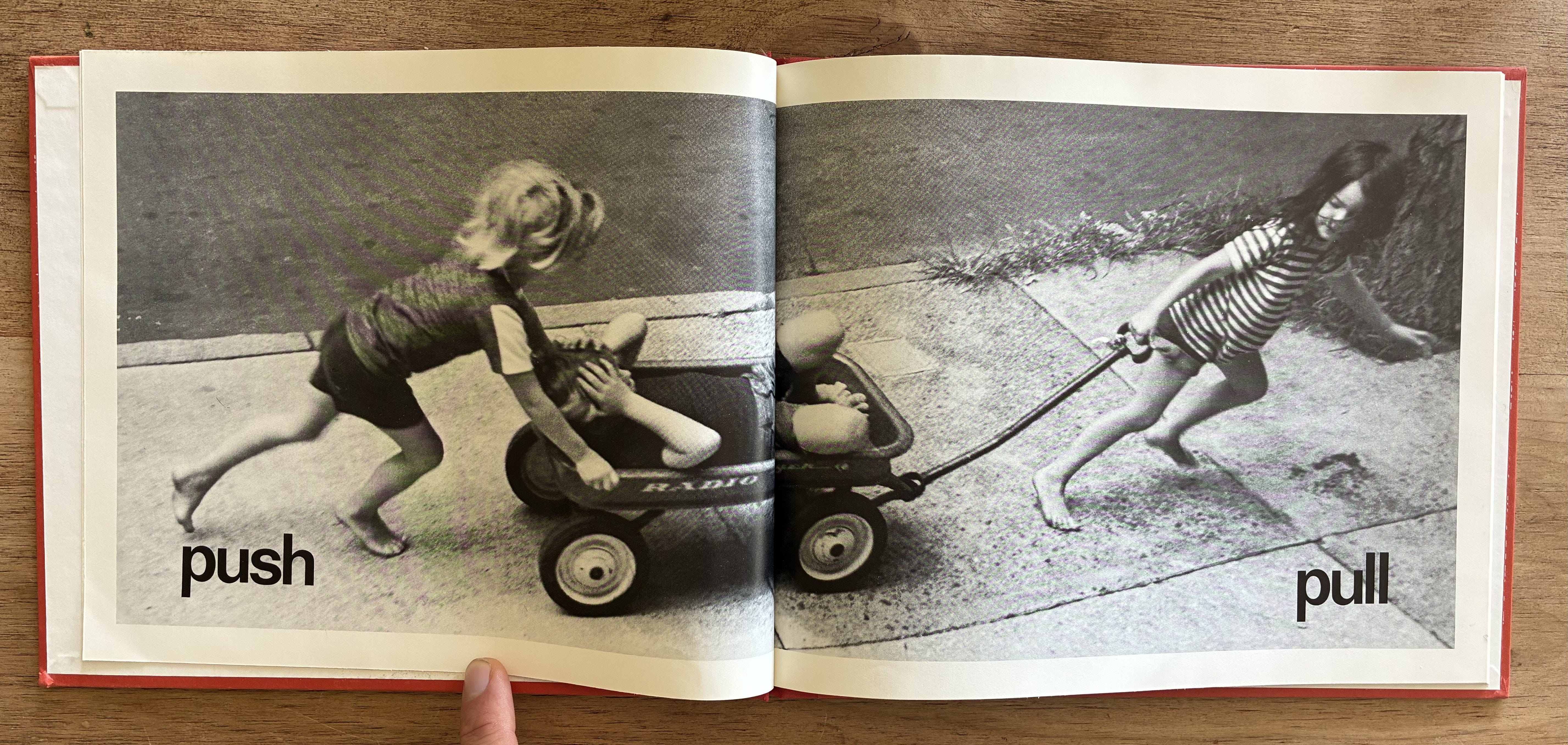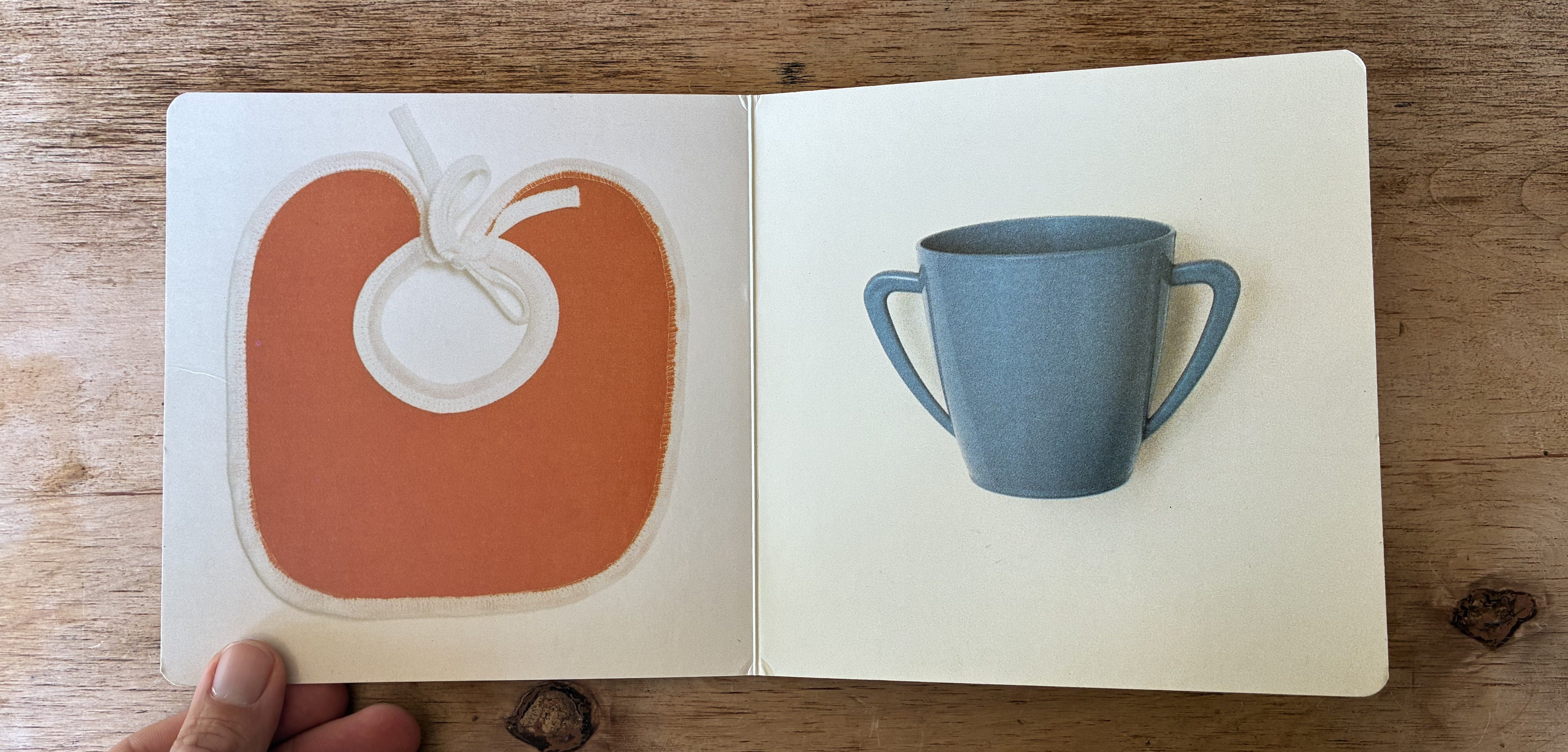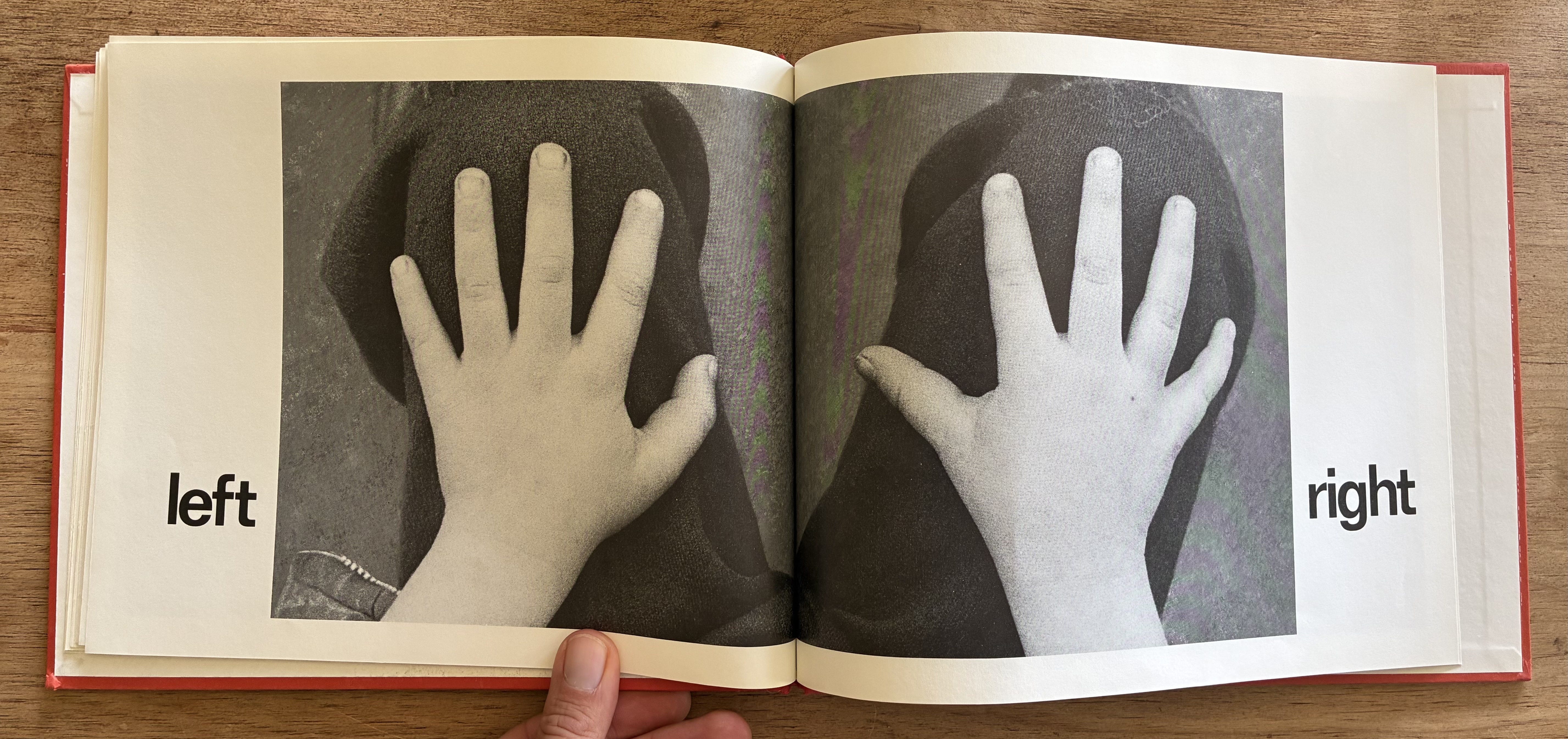 It’s using the left and right of the spread, but also of course using that those are your left and right hands. It’s using the formal plainness of the type, which is clear and readable for the youngest audience, against the spontaneous, slightly asymmetrical photograph that is alive and natural-feeling even though it’s also the clearest angle to present that idea from. The words themselves are aligned with the hands on the page instead of being centered, height-wise.