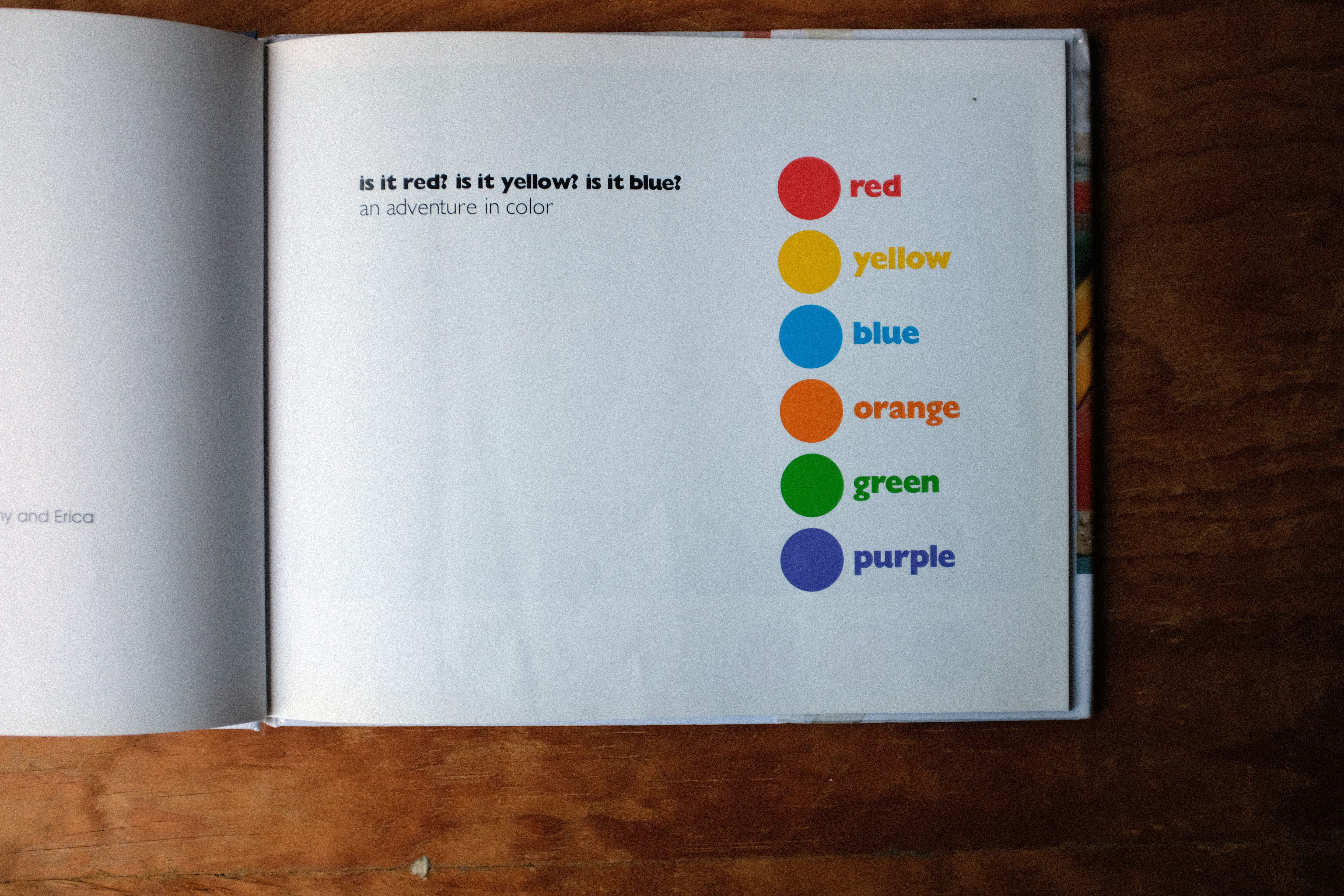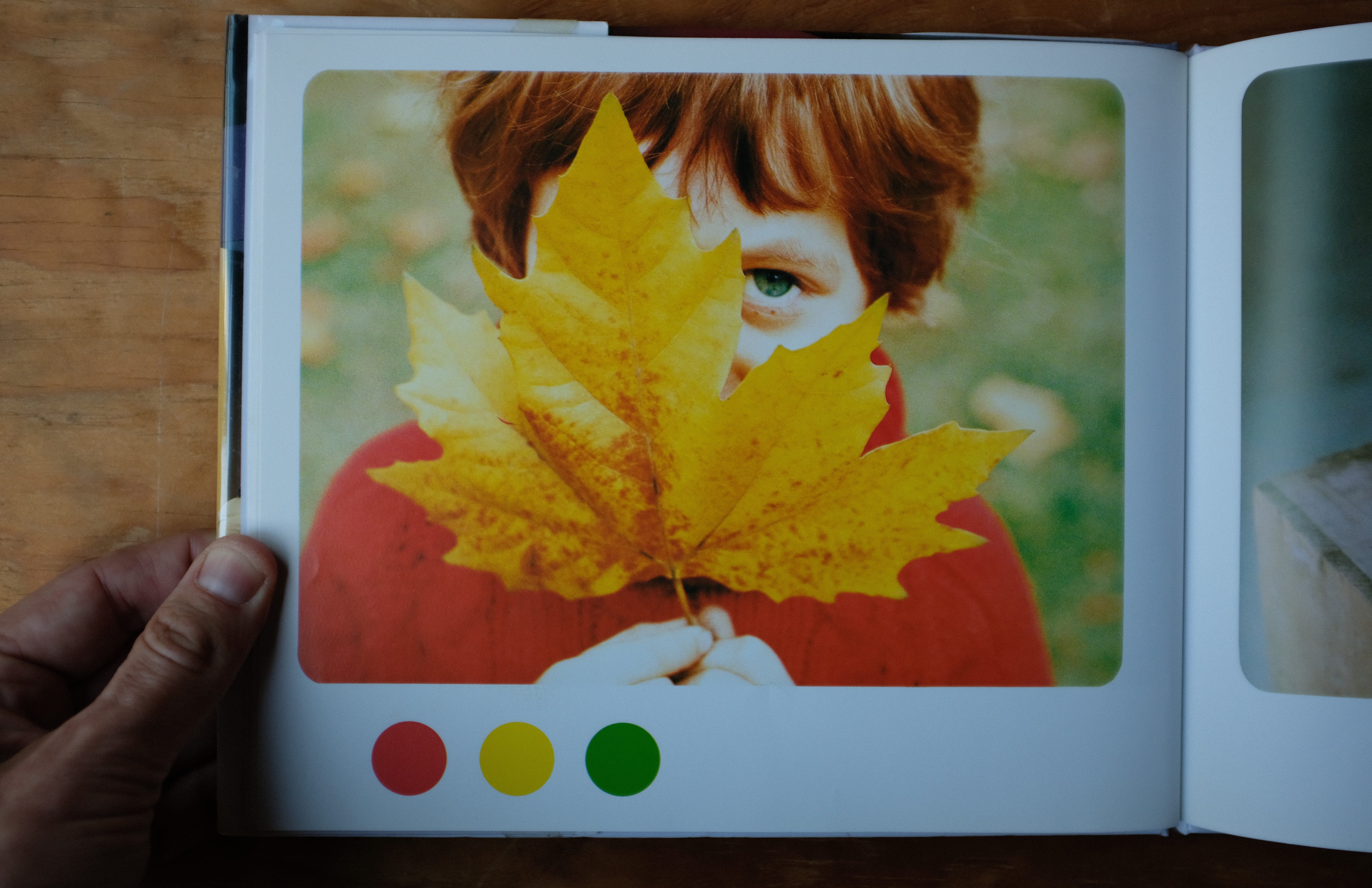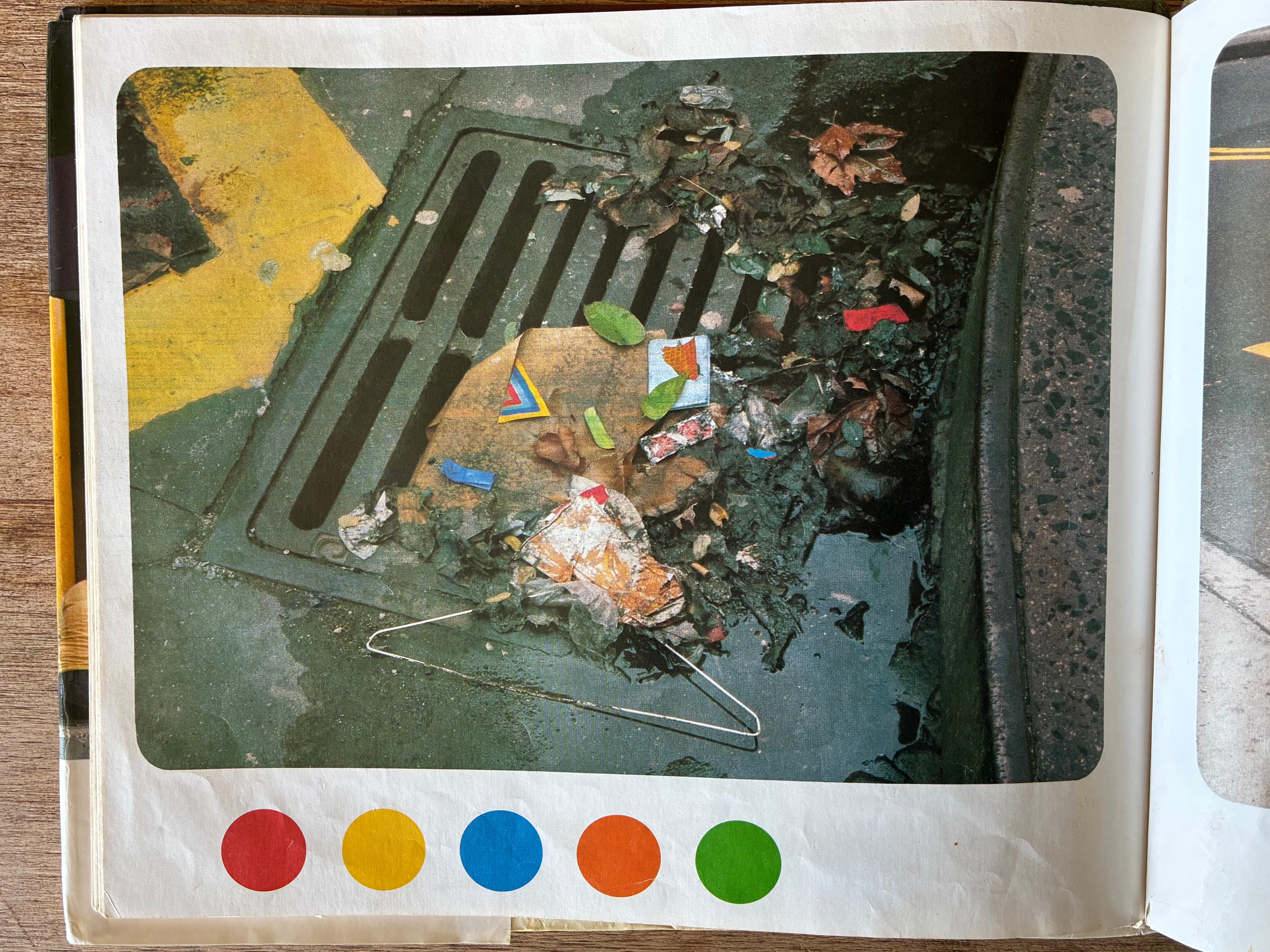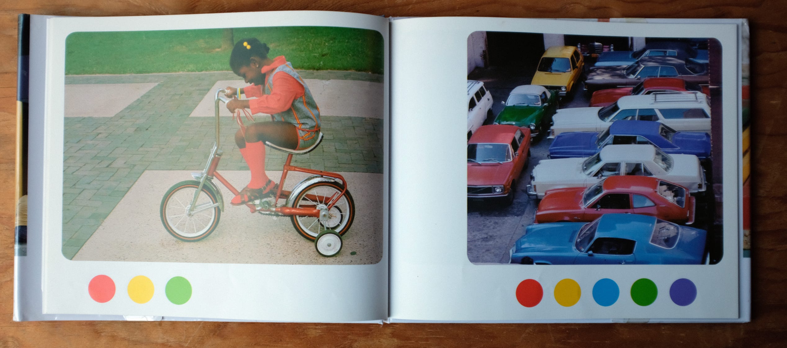 The rest of the book is wordless, a series of photographs, each with a set of colored dots below it that prompt the kid reading to find those colors in the picture