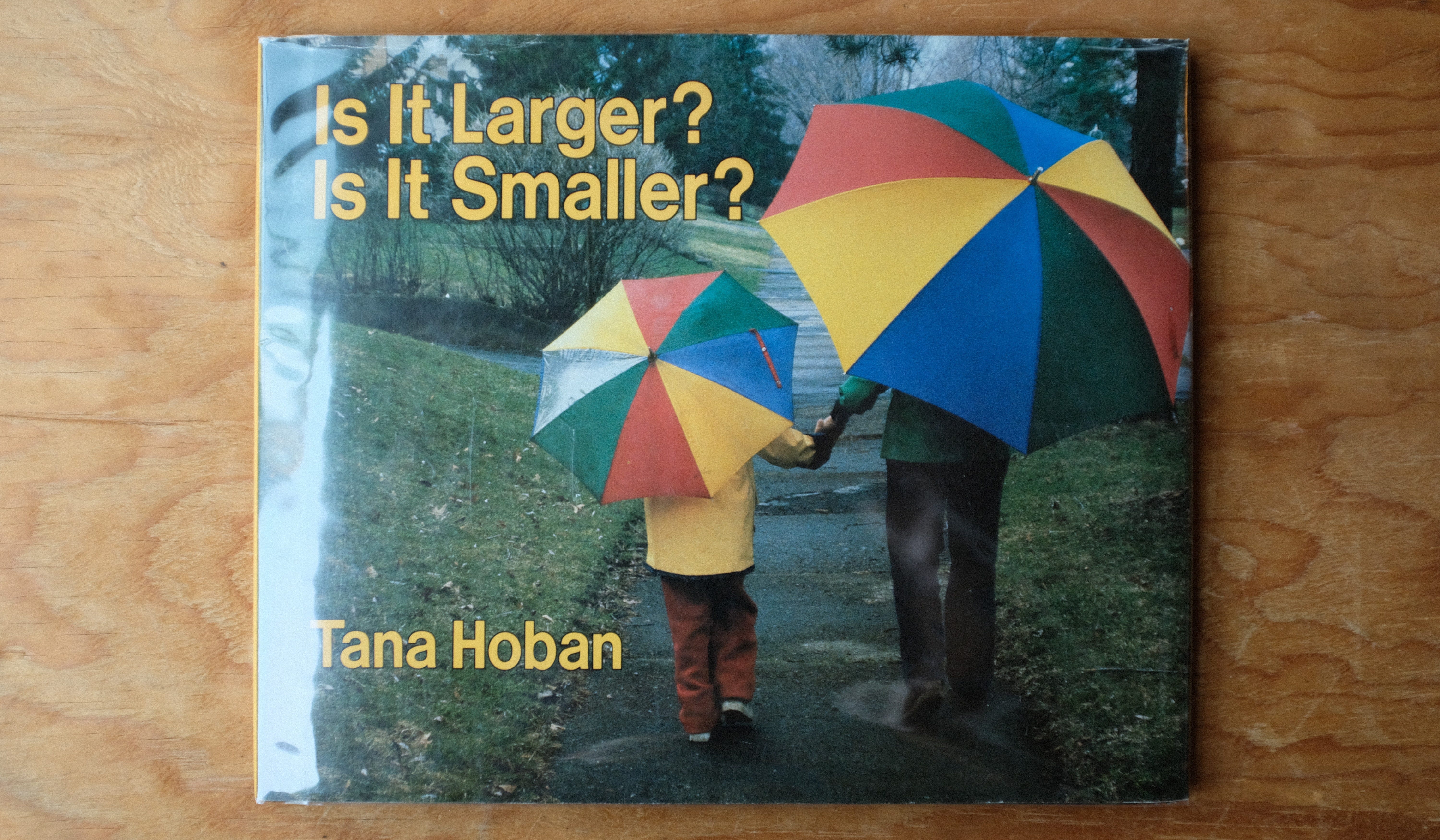 And you can play the game with the cover photo — an adult and a smaller kid with matching umbrellas in two different sizes.