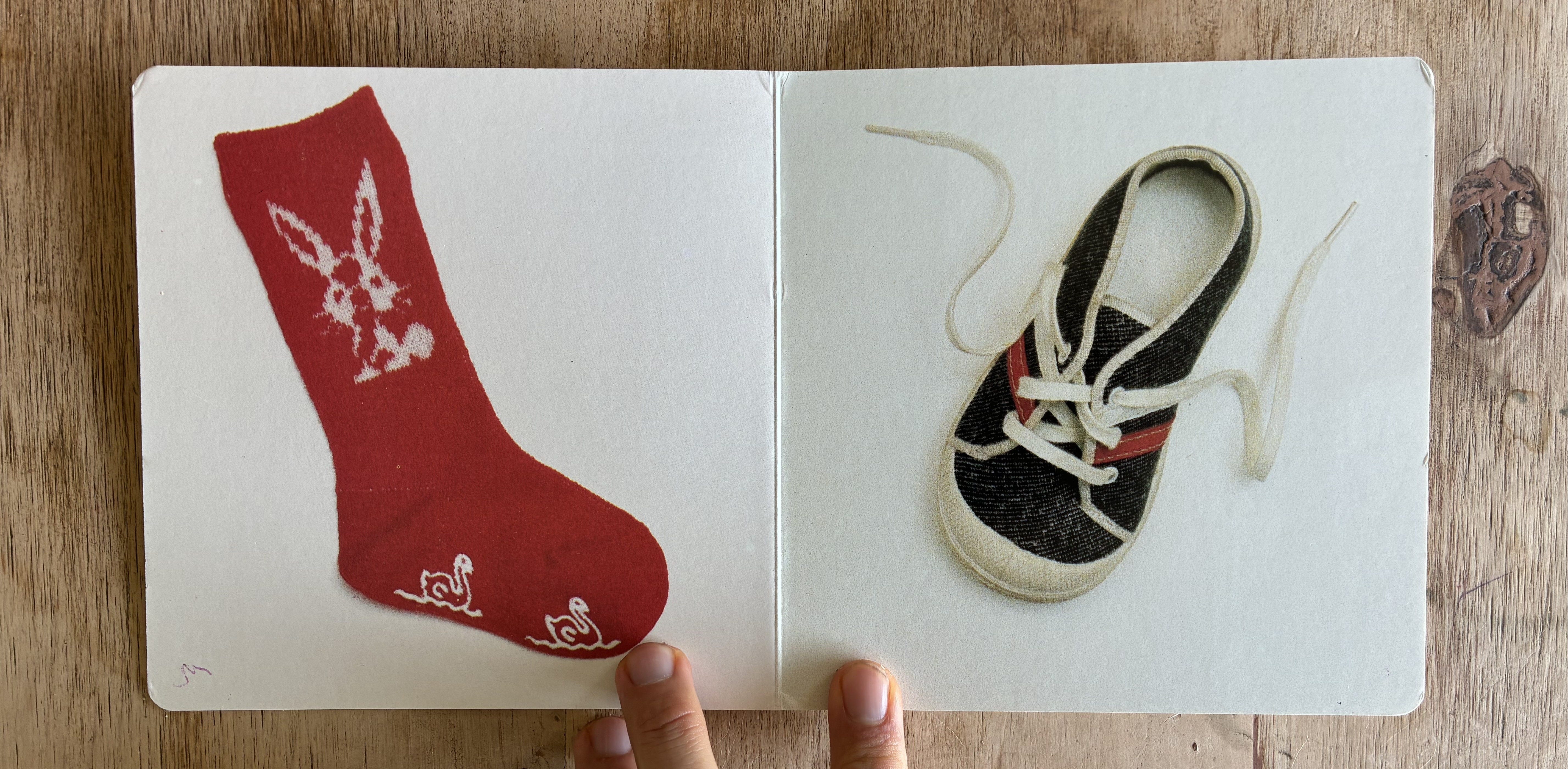 Like other books for kids this age would put SOCK and SHOE on the page.